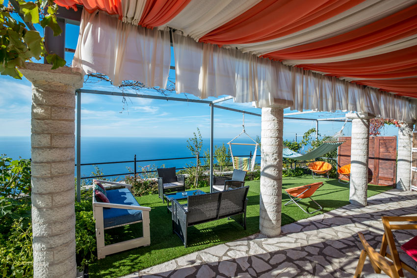 Η villa είναι πνιγμένη από λουλούδια δένδρα και αρωματικά βότανα. Ολόγυρα του σπιτιού υπάρχουν μεγάλα πλακόστρωτα. Μια τεράστια αυλή-κήπο σας προσφέρει αιώρες κάτω από τα δένδρα, τραπεζάκια και μπάρμπεκιου. Διαθέτει δωρεάν πάρκων και δωρεάν wi-fi.