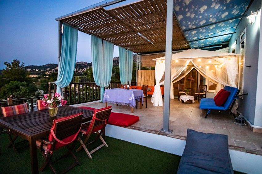 Η villa είναι πνιγμένη από λουλούδια δένδρα και αρωματικά βότανα. Ολόγυρα του σπιτιού υπάρχουν μεγάλα πλακόστρωτα. Μια τεράστια αυλή-κήπο σας προσφέρει αιώρες κάτω από τα δένδρα, τραπεζάκια και μπάρμπεκιου. Διαθέτει δωρεάν πάρκων και δωρεάν wi-fi.